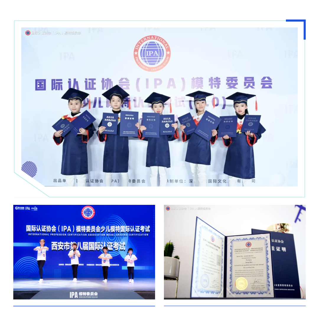 IPA少儿模特专业能力测评,专注研发4-16岁青少年儿童阶段测评考核内容与考核标准,为模特行业提供一个公正客观的少儿模特专业水平测评标准,设立初、中、高、专业、职业级五个考试等级,因材施教,真实测试学员专业能力水平,测评通过的学员可注册国际少儿模特专业能力证书。专业能力证书全球通用,为艺术成长之路沉淀价值。